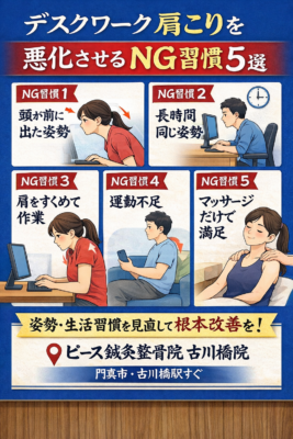 前に出るほど首と肩の筋肉が常に引っ張られます。